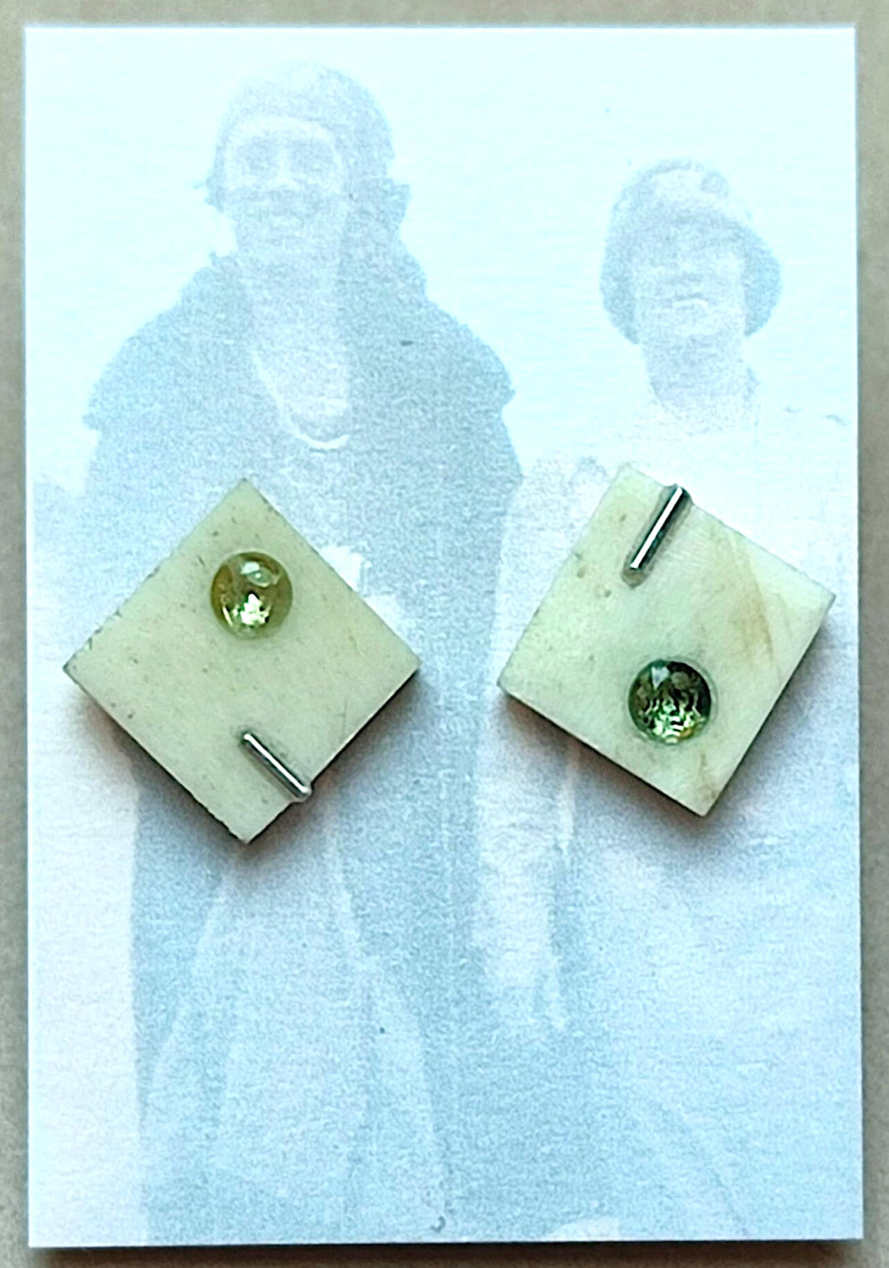 All the fittings (pegs, scrolls) on the earstuds are 925 silver or silver plated. Settings are Araldite 24hr cure. The brooches have long steel pins at the back, with a steel and rubber stopper. All pieces are signed. Gemstones and silver from Hatton Garden suppliers and reputable jewellery supplies.