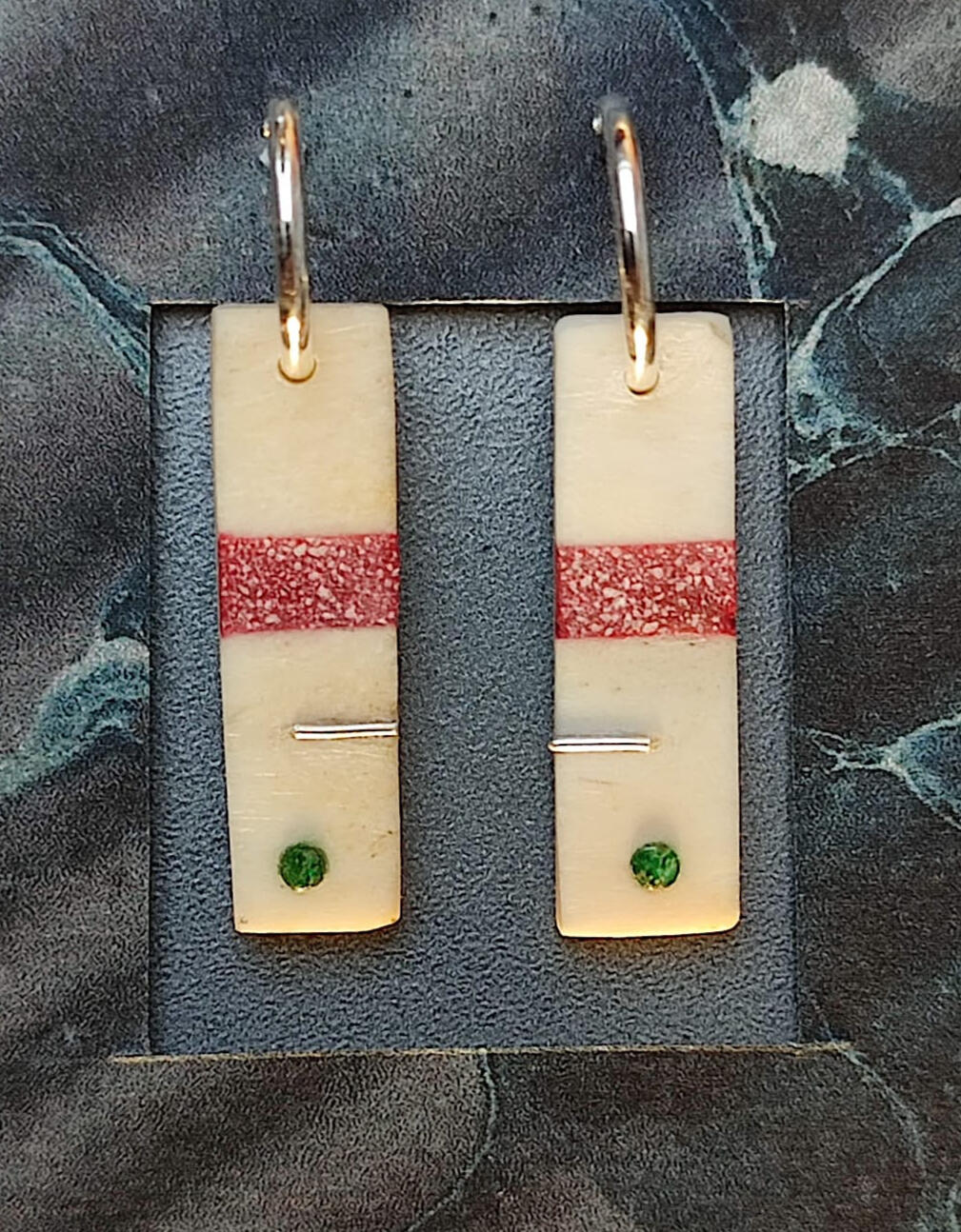 Jewellery made with bone, antler, wood, concrete, silver & gemstones.